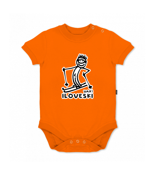 UAX baby body SHORT for kid with design 1122 I LOVE SKI in color SIGNAL ORANGE