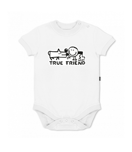 UAX baby body SHORT for kid with design 1123 TRUE FRIEND in color WHITE