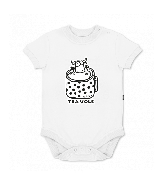 UAX baby body SHORT for kid with design 1124 TEA VOLE in color WHITE