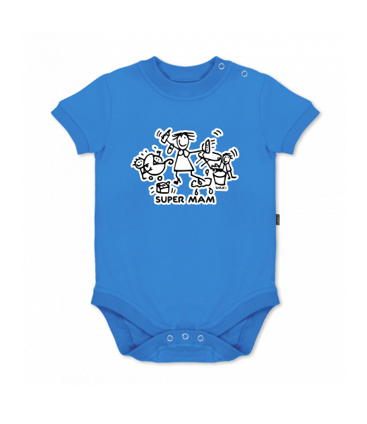 We make sustainable UAX clothing! - hand sewn in the Czech Republic uaxKids uaxAll productsBaby bodyBABY BODY SHORTdesign 1126 - SUPER MAMCAPRI BLUE
