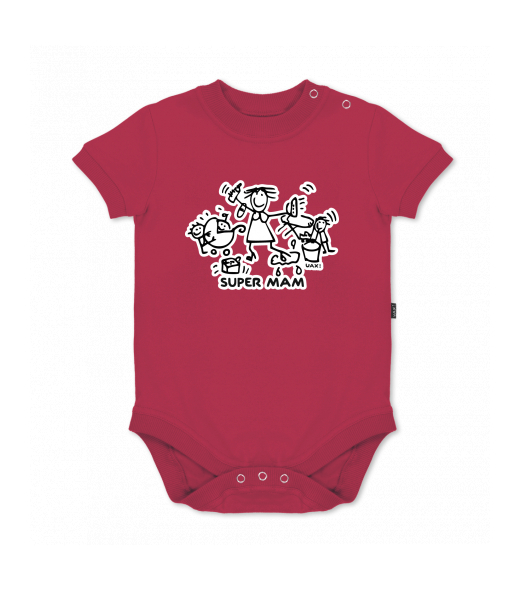 UAX baby body SHORT for kid with design 1126 SUPER MAM in color CHILLY PEPPER RED