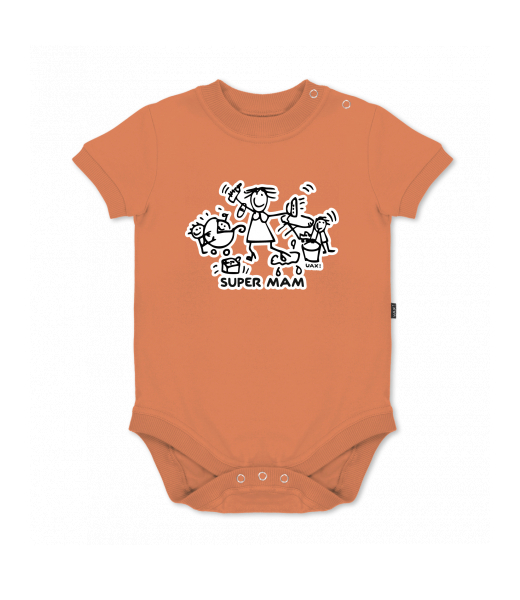 UAX baby body SHORT for kid with design 1126 SUPER MAM in color MANDARIAN ORANGE