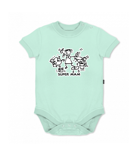 UAX baby body SHORT for kid with design 1126 SUPER MAM in color MINT