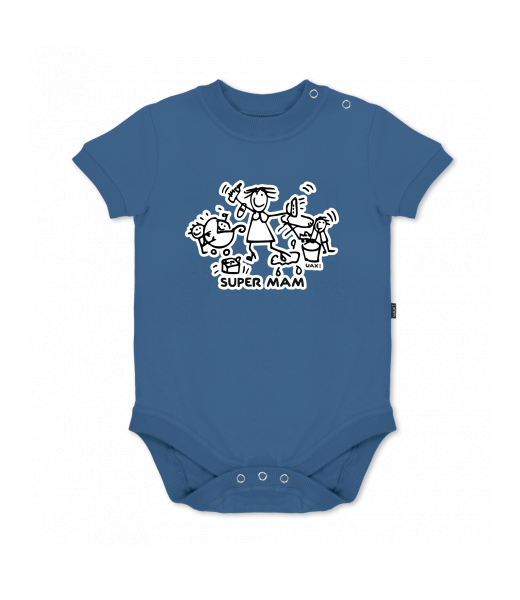 UAX baby body SHORT for kid with design 1126 SUPER MAM in color MOONLIGHT BLUE
