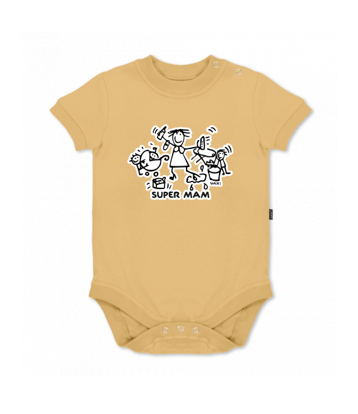 UAX baby body SHORT for kid with design 1126 SUPER MAM in color MUSTARD