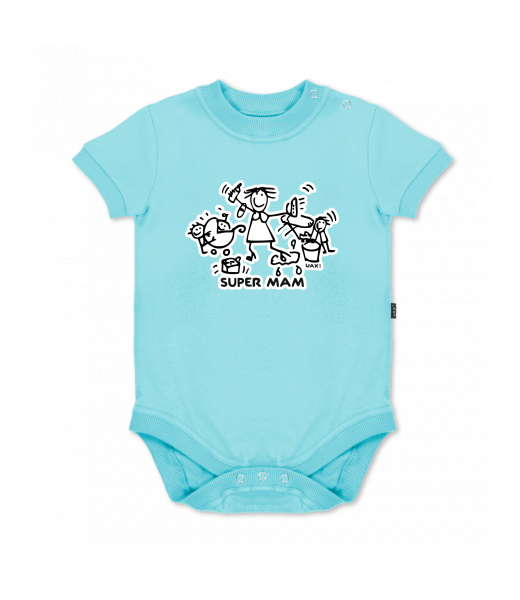 UAX baby body SHORT for kid with design 1126 SUPER MAM in color PASTEL BLUE