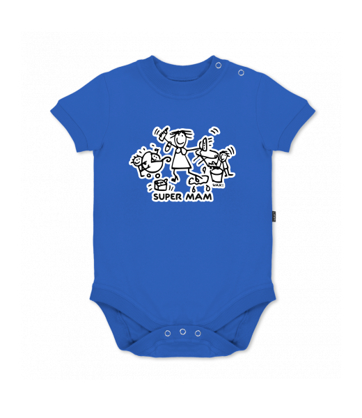 UAX baby body SHORT for kid with design 1126 SUPER MAM in color ROYAL BLUE