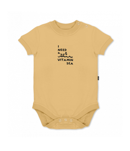 UAX baby body SHORT for kid with design 1132 I NEED VITAMIN SEA in color MUSTARD