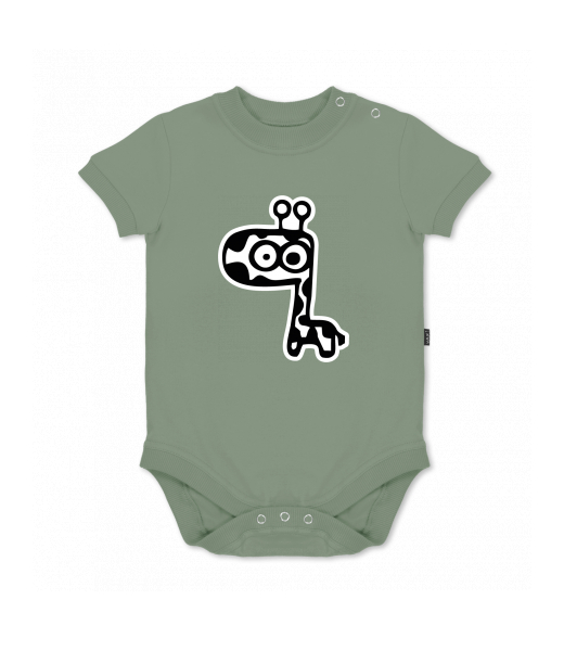 UAX baby body SHORT for kid with design 1155 ŽIRAFA in color OLIVA