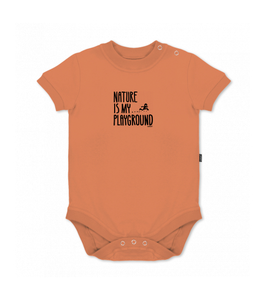 UAX baby body SHORT for kid with design 1160 NATURE IS MY PLAYGROUND in color MANDARIAN ORANGE