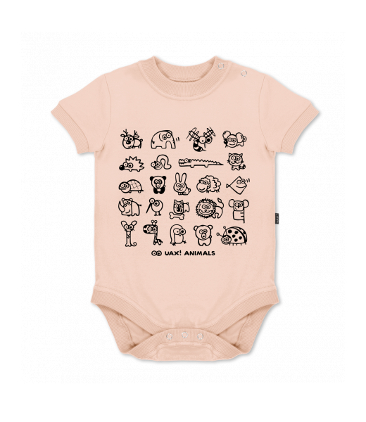 UAX baby body SHORT for kid with design 1168 UAX! ANIMALS in color CAPPUCINO