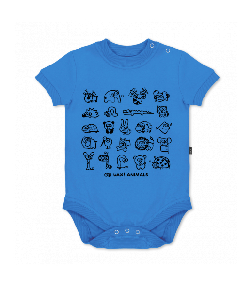 UAX baby body SHORT for kid with design 1168 UAX! ANIMALS in color CAPRI BLUE