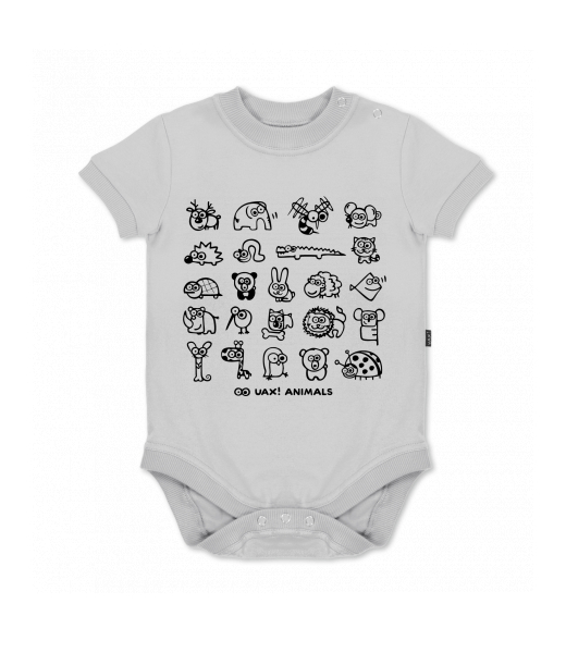 UAX baby body SHORT for kid with design 1168 UAX! ANIMALS in color CEMENT