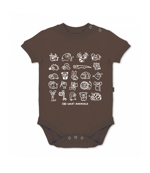 UAX baby body SHORT for kid with design 1168 UAX! ANIMALS in color CHESTNUT