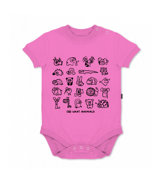 UAX baby body SHORT for kid with design 1168 UAX! ANIMALS in color CLASSIC PINK