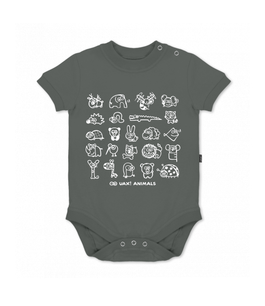 UAX baby body SHORT for kid with design 1168 UAX! ANIMALS in color DARK GRAY