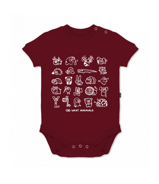 UAX baby body SHORT for kid with design 1168 UAX! ANIMALS in color DARK RED