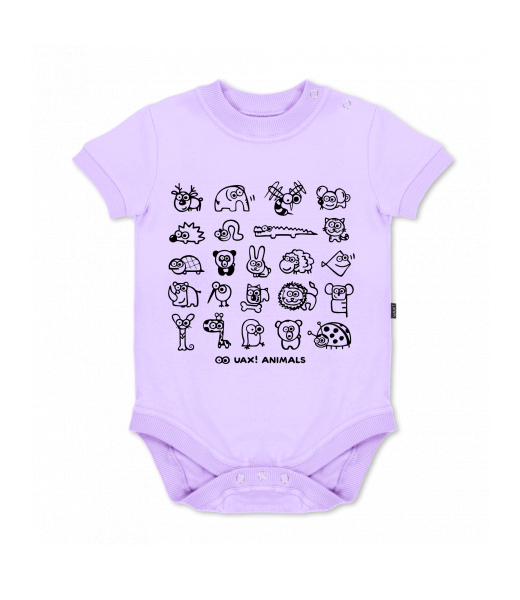 UAX baby body SHORT for kid with design 1168 UAX! ANIMALS in color LAVENDER