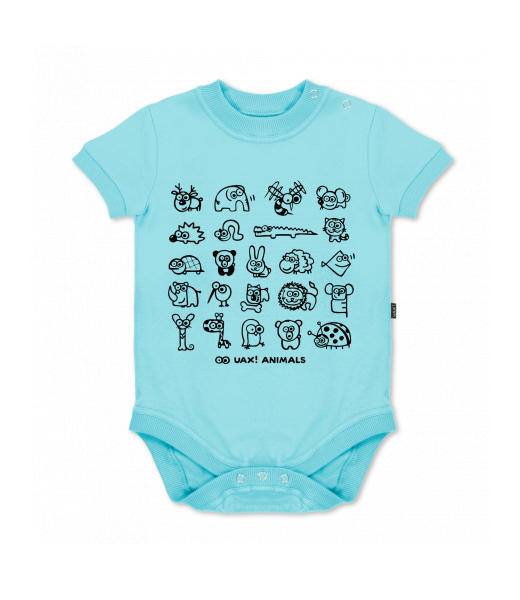 UAX baby body SHORT for kid with design 1168 UAX! ANIMALS in color PASTEL BLUE