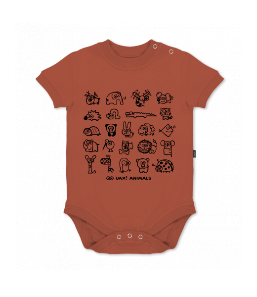UAX baby body SHORT for kid with design 1168 UAX! ANIMALS in color TERRA