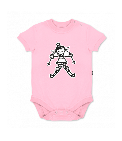 UAX baby body SHORT for kid with design 1179 SKIER GIRL in color BABY PINK