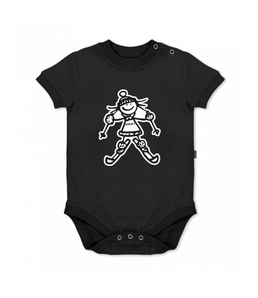 UAX baby body SHORT for kid with design 1179 SKIER GIRL in color BLACK