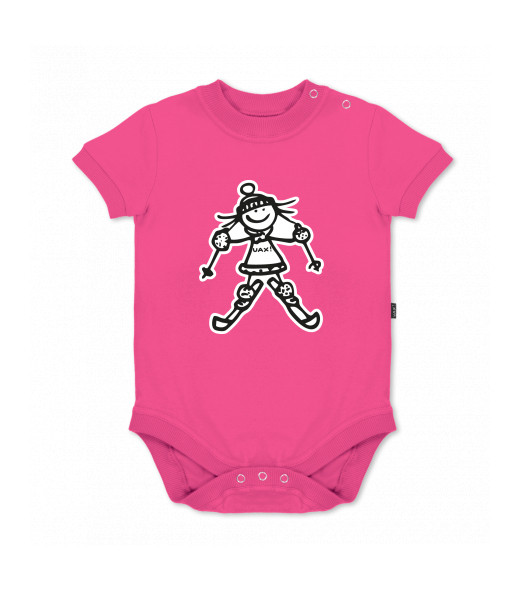 UAX baby body SHORT for kid with design 1179 SKIER GIRL in color INDIAN LILA