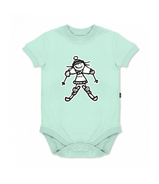 UAX baby body SHORT for kid with design 1179 SKIER GIRL in color MINT