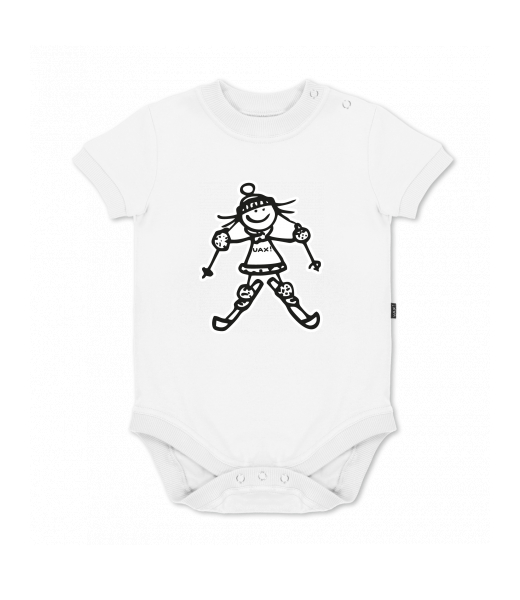 UAX baby body SHORT for kid with design 1179 SKIER GIRL in color WHITE