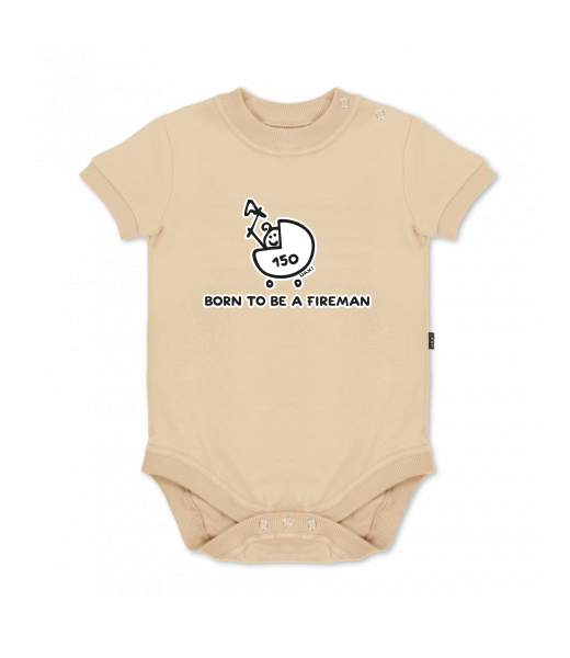UAX baby body SHORT for kid with design 1184 BORN TO BE A FIREMAN in color CARAMEL