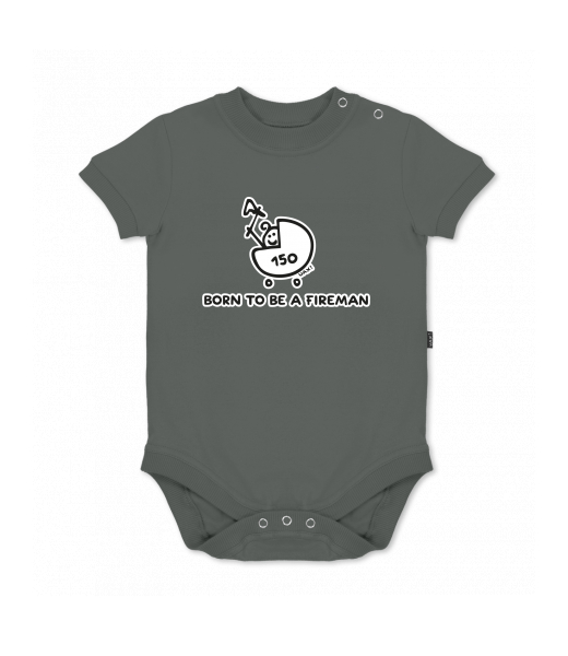 UAX baby body SHORT for kid with design 1184 BORN TO BE A FIREMAN in color DARK GRAY