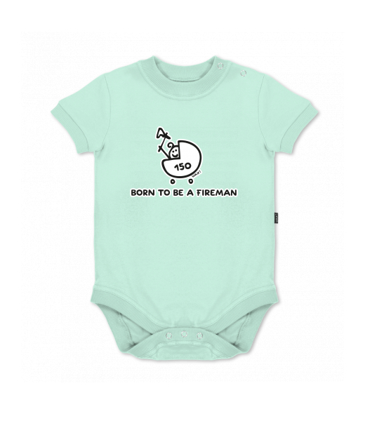 UAX baby body SHORT for kid with design 1184 BORN TO BE A FIREMAN in color MINT