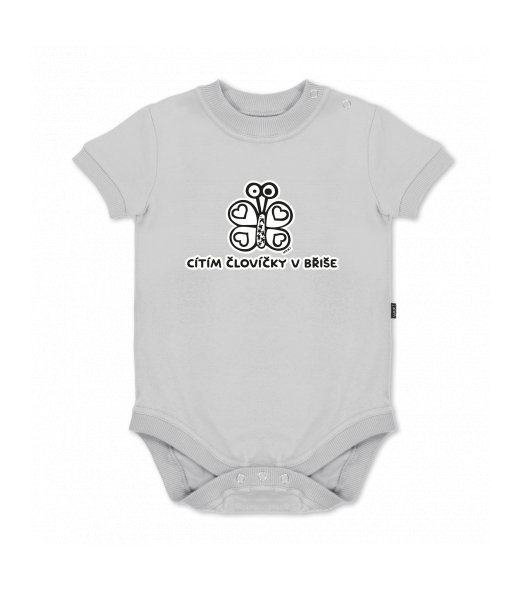UAX baby body SHORT for kid with design 1188 CÍTÍM ČLOVÍČKY V BŘIŠE in color CEMENT