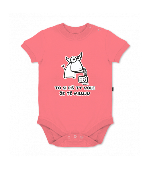 UAX baby body SHORT for kid with design 1192 TO SI PIŠ TY VOLE ŽE TĚ MILUJU in color LOSOSOVA