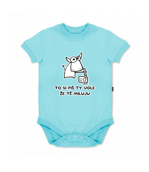 We make sustainable UAX clothing! - hand sewn in the Czech Republic uaxKids uaxAll productsBaby bodyBABY BODY SHORTdesign 1192 - TO SI PIŠ TY VOLE ŽE TĚ MILUJUPASTEL BLUE