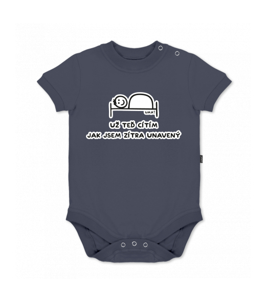 We make sustainable UAX clothing! - hand sewn in the Czech Republic uaxKids uaxAll productsBaby bodyBABY BODY SHORTdesign 1200 - UŽ TEĎ CÍTÍM JAK JSEM ZÍTRA UNAVENÝGRAY INK