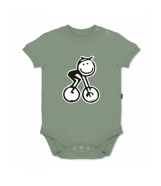 UAX baby body SHORT for kid with design 1202 BIKE MAN in color OLIVA
