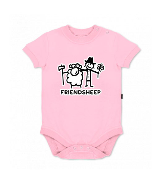 UAX baby body SHORT for kid with design 1205 FRIENDSHEEP in color BABY PINK