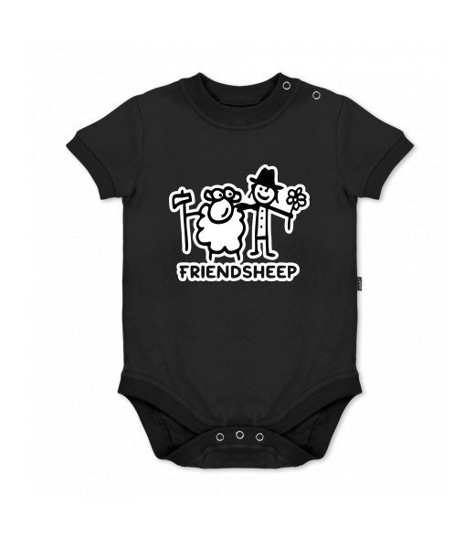 UAX baby body SHORT for kid with design 1205 FRIENDSHEEP in color BLACK