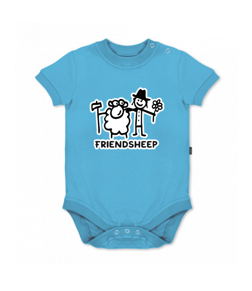 UAX baby body SHORT for kid with design 1205 FRIENDSHEEP in color BLUE ATOLL