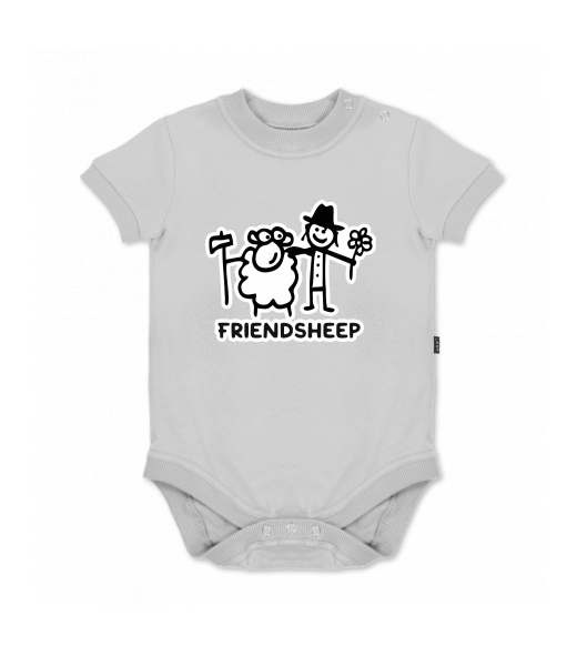 UAX baby body SHORT for kid with design 1205 FRIENDSHEEP in color CEMENT