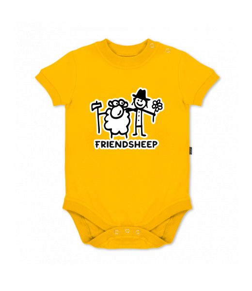 UAX baby body SHORT for kid with design 1205 FRIENDSHEEP in color GOLDEN CREAM