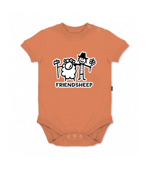 UAX baby body SHORT for kid with design 1205 FRIENDSHEEP in color MANDARIAN ORANGE