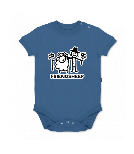 UAX baby body SHORT for kid with design 1205 FRIENDSHEEP in color MOONLIGHT BLUE