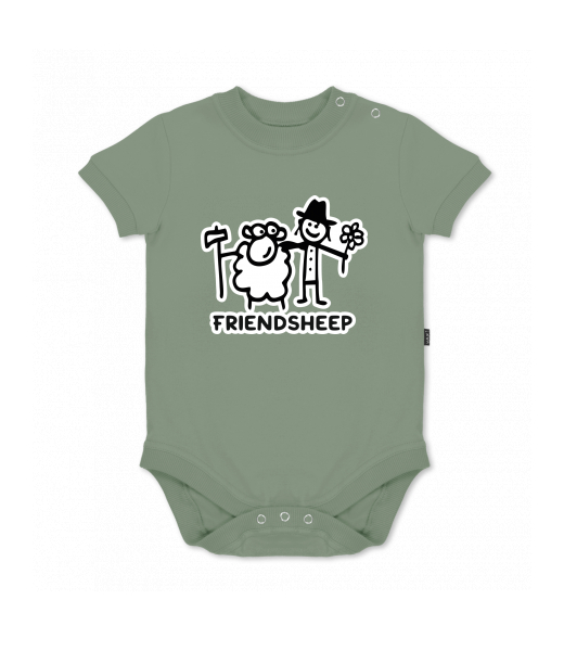 UAX baby body SHORT for kid with design 1205 FRIENDSHEEP in color OLIVA