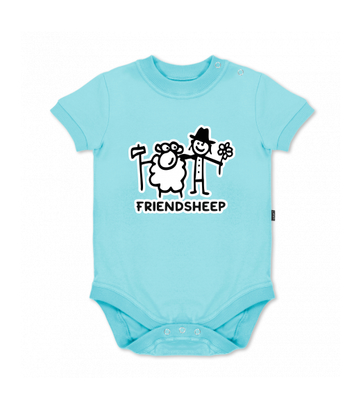 UAX baby body SHORT for kid with design 1205 FRIENDSHEEP in color PASTEL BLUE