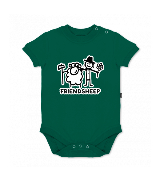 UAX baby body SHORT for kid with design 1205 FRIENDSHEEP in color UNIVERSITY GREEN
