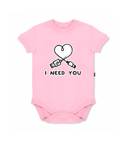 UAX baby body SHORT for kid with design 1206 I NEED YOU 2 in color BABY PINK