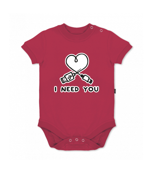 UAX baby body SHORT for kid with design 1206 I NEED YOU 2 in color CHILLY PEPPER RED