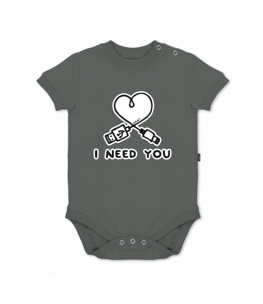 UAX baby body SHORT for kid with design 1206 I NEED YOU 2 in color DARK GRAY